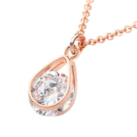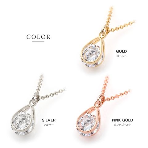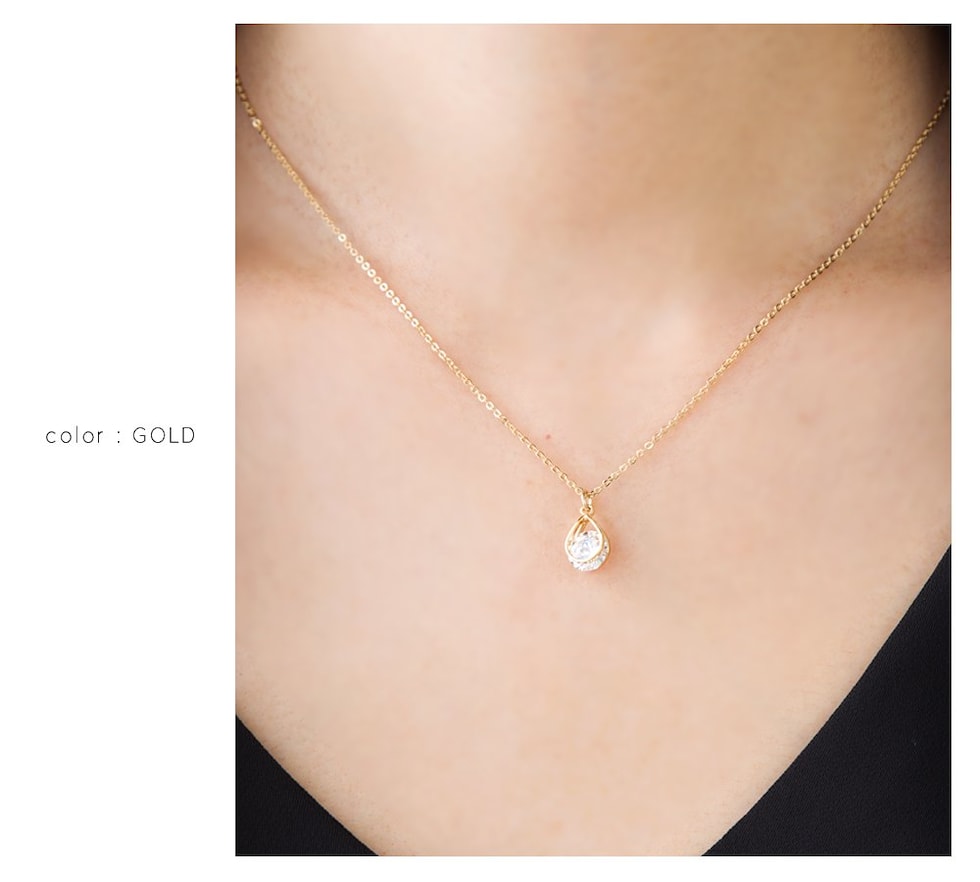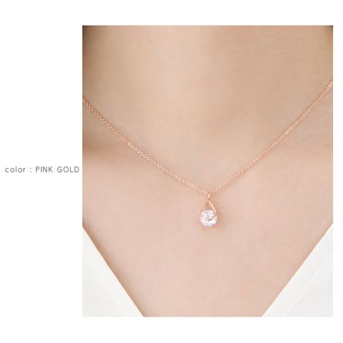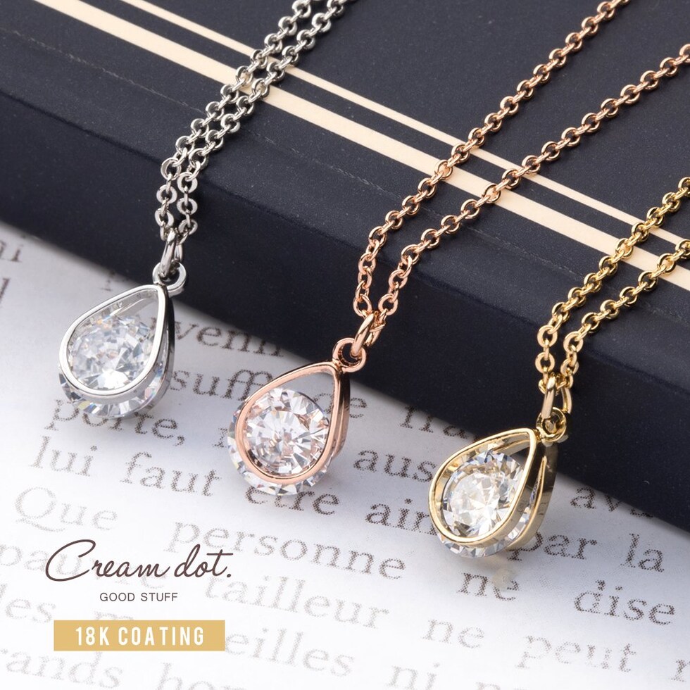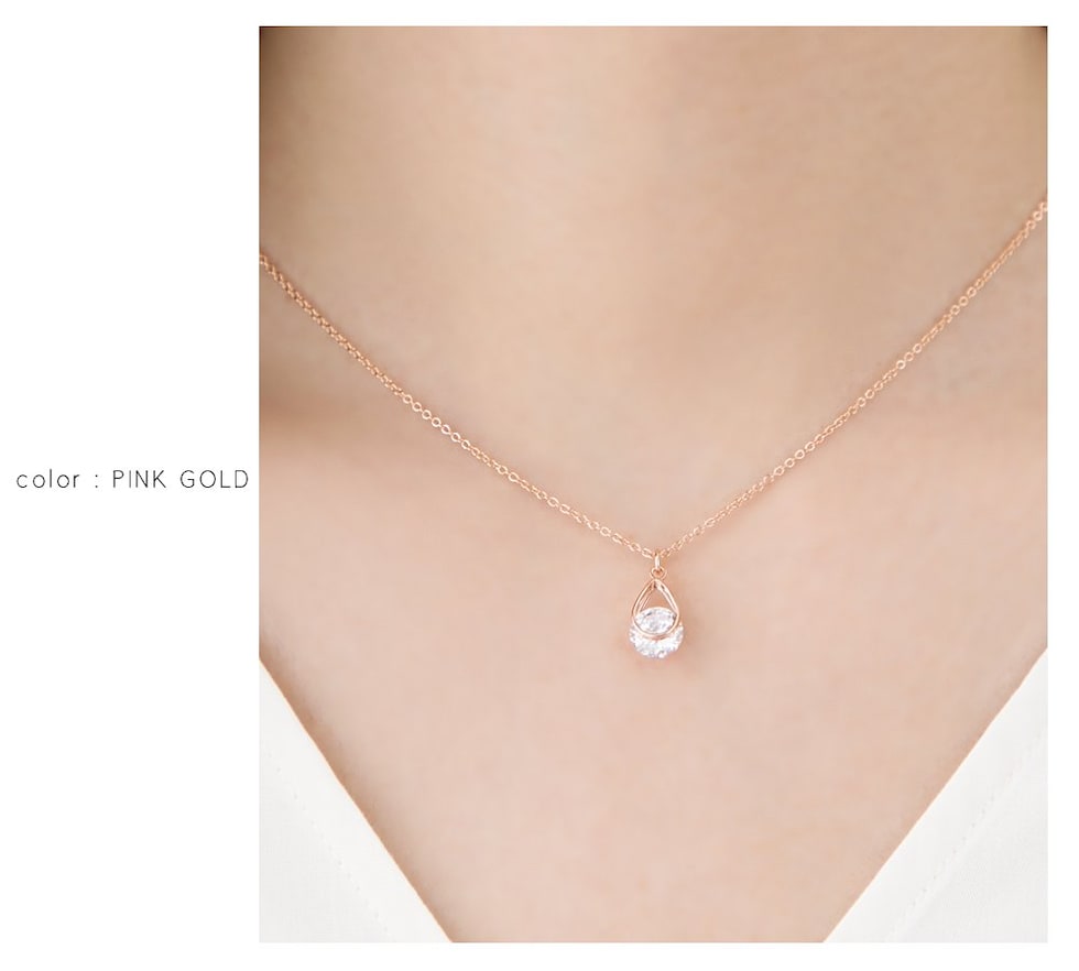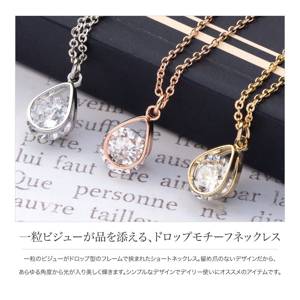 ネックレス レディース ショート チェーン キュービックジルコニア 一粒ビジュー ドロップ cream dot ゆうパケット [ピンクゴールド_ワンサイズ]
