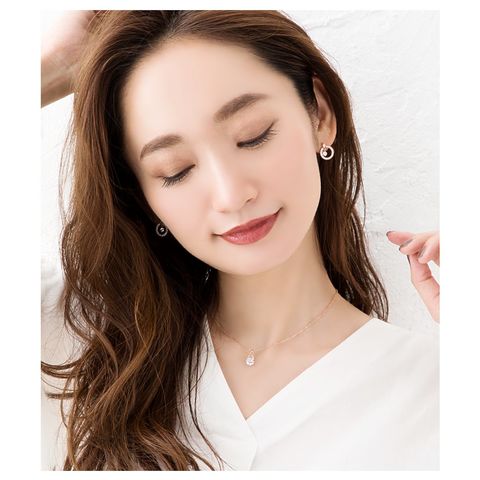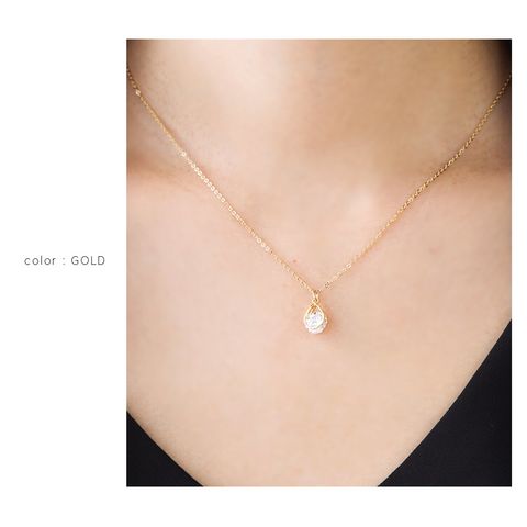 一粒のビジューがドロップ型のフレームで挟まれたショートネックレス。