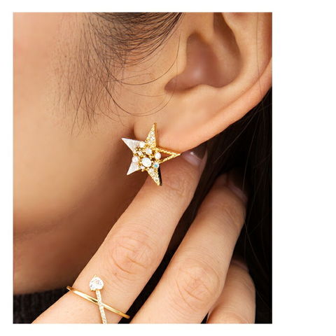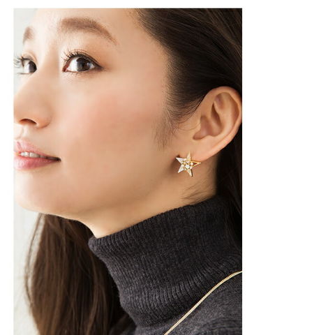 スターモチーフに艶めくパールや煌めくビジューをふんだんにのせた、デコラティブなピアス/イヤリング。