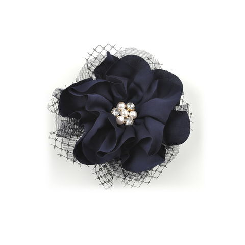コサージュ フラワー レース ビジュー フェイクパール ピン 花 ワンポイント ブライダル アクセサリー cream dot ゆうパック [ネイビー_ワンサイズ]
