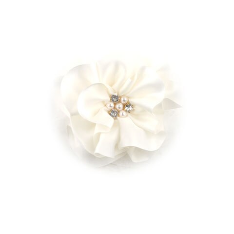 コサージュ フラワー レース ビジュー フェイクパール ピン 花 ワンポイント ブライダル アクセサリー cream dot ゆうパック [ホワイト_ワンサイズ]