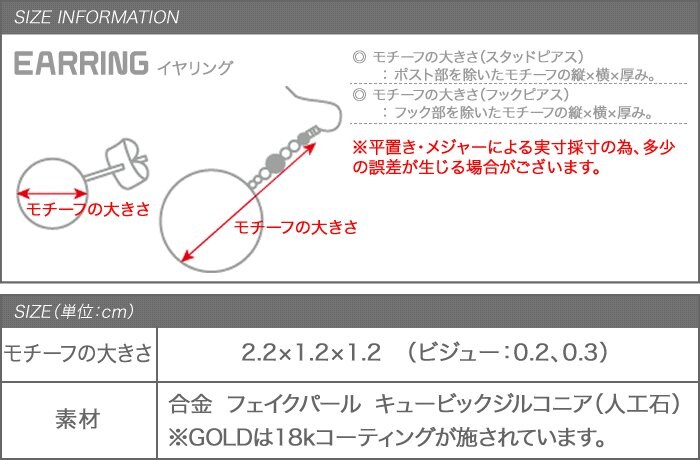 モチーフ大きさ:2.2cm×1.2cm×1.2cm(ビジュー:0.2cm、0.3cm)