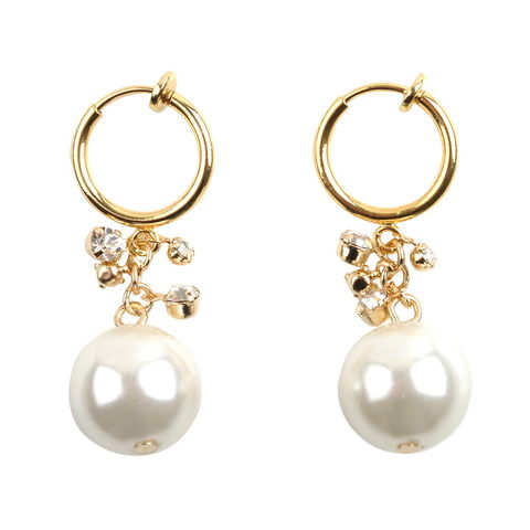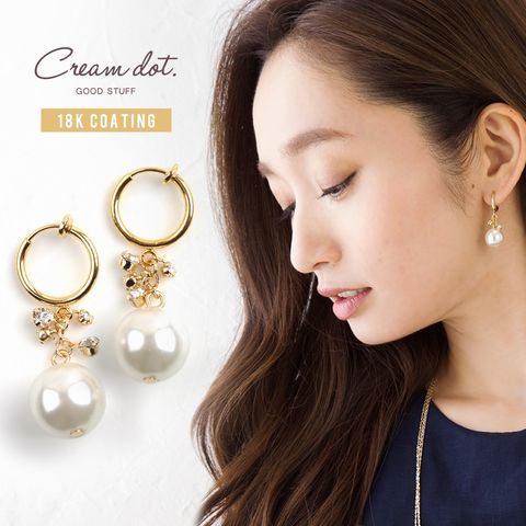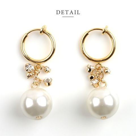イヤリング レディース フープ バネ式 大粒パール ビジュー アクセサリー ジュエリー cream dot ゆうパケット [ゴールド_イヤリング]