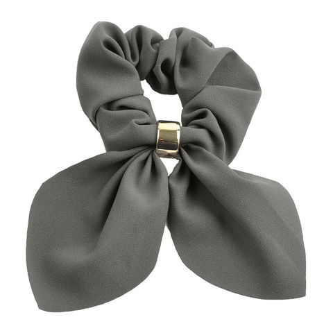 キュートながらも落ち着いた色合いと質感が上品さを添えるスカーフリボンシュシュ。