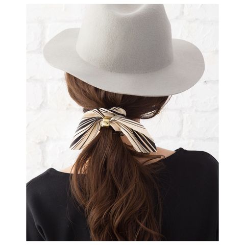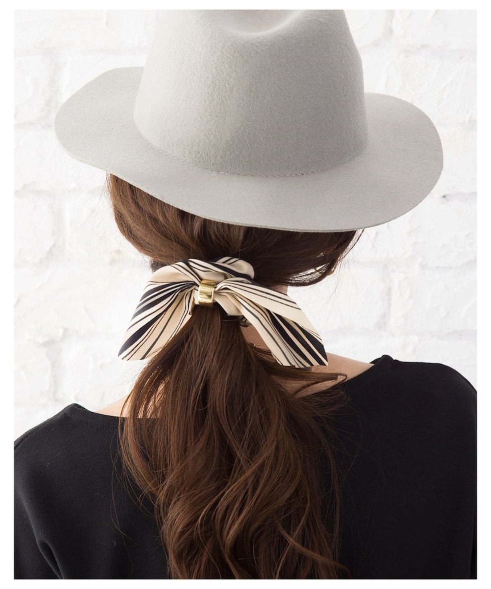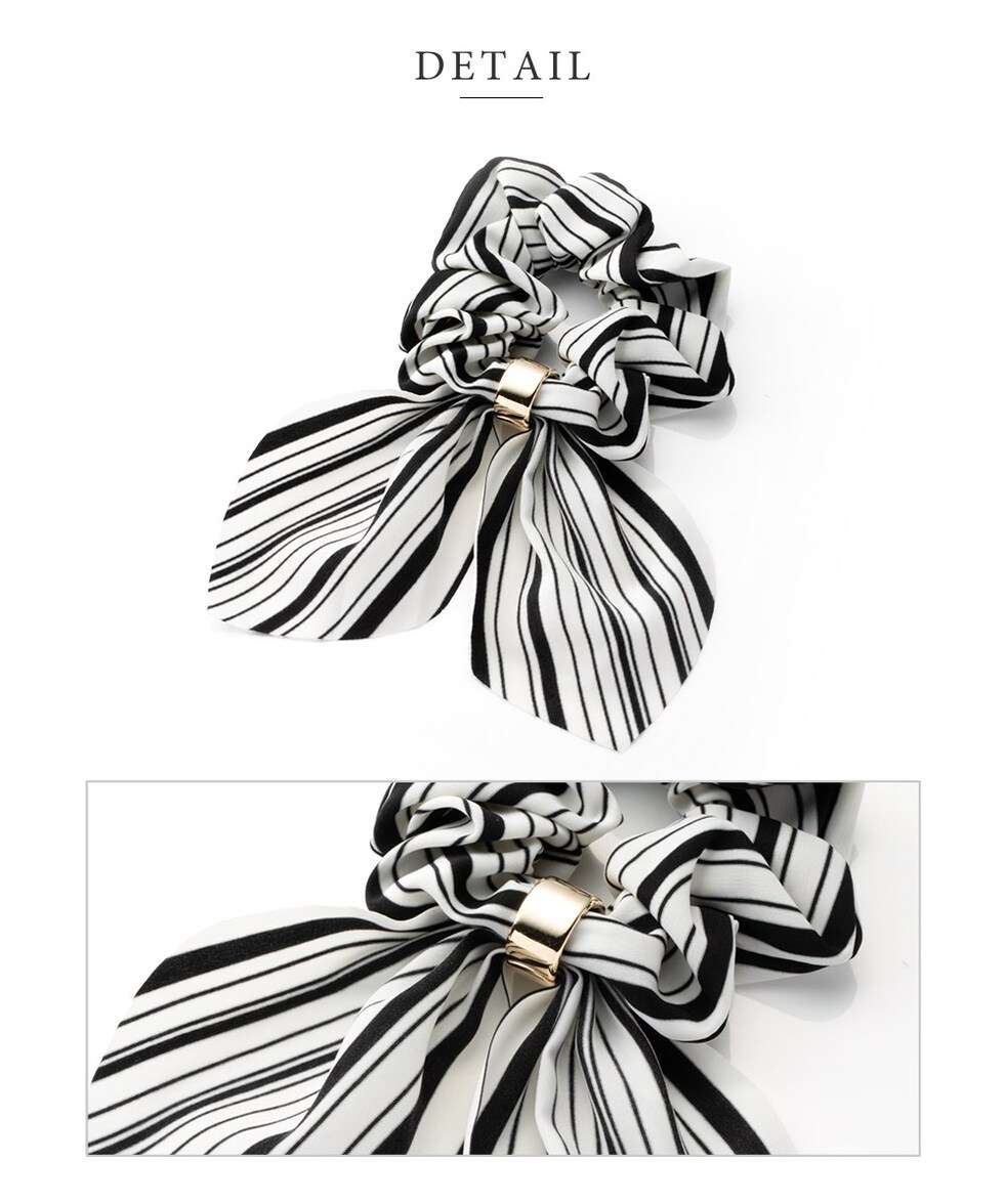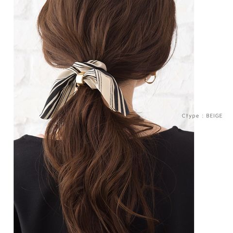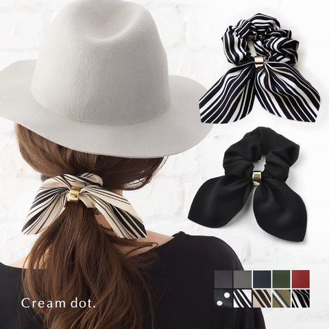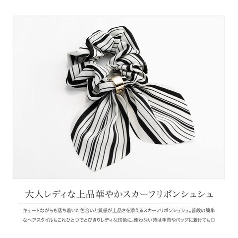 キュートながらも落ち着いた色合いと質感が上品さを添えるスカーフリボンシュシュ。