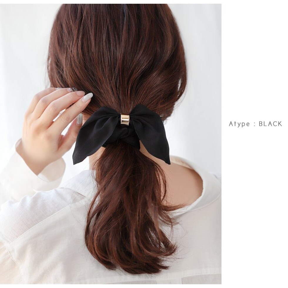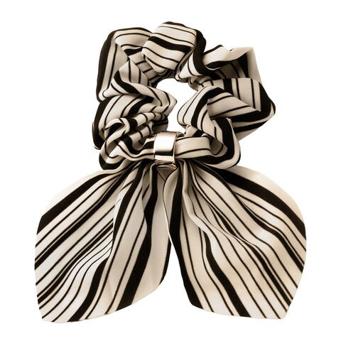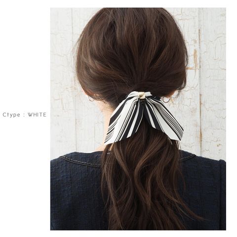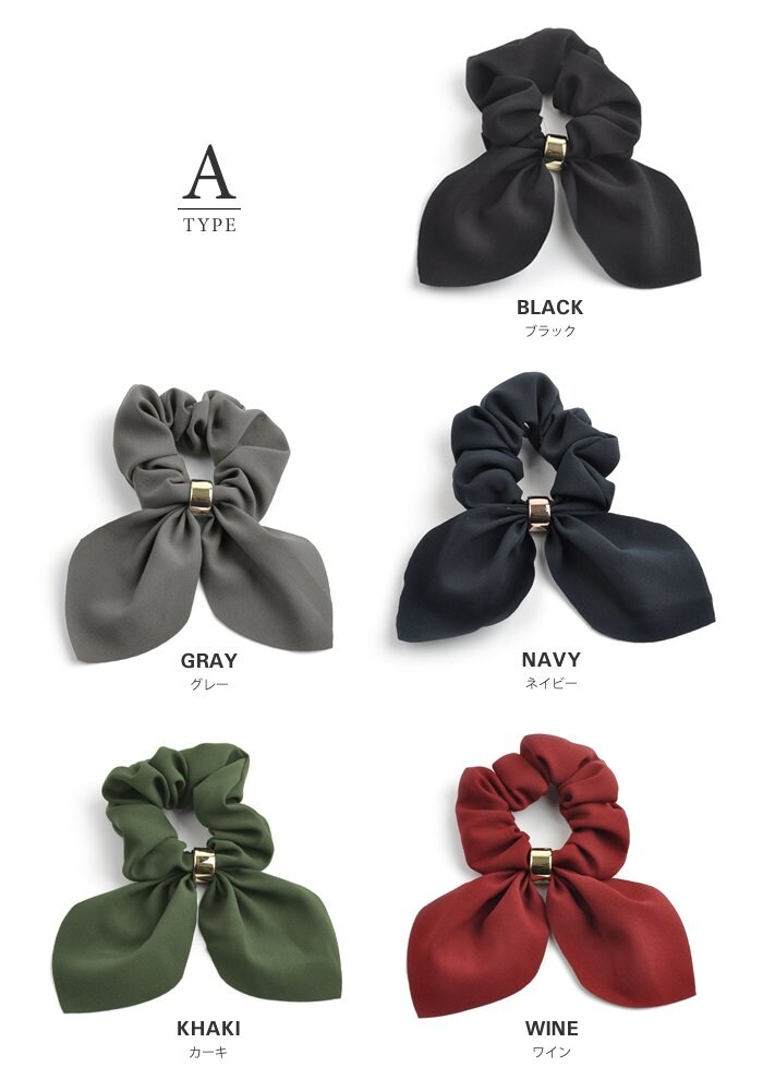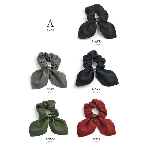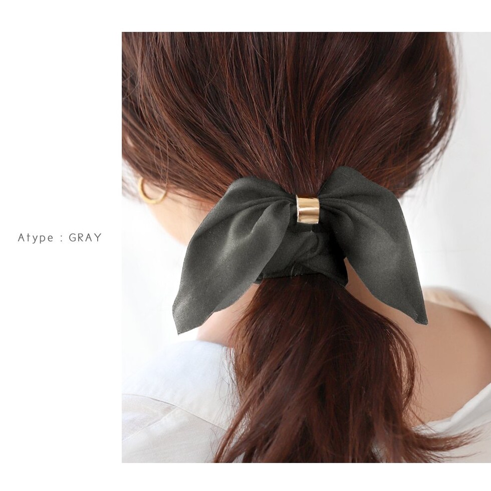 キュートながらも落ち着いた色合いと質感が上品さを添えるスカーフリボンシュシュ。