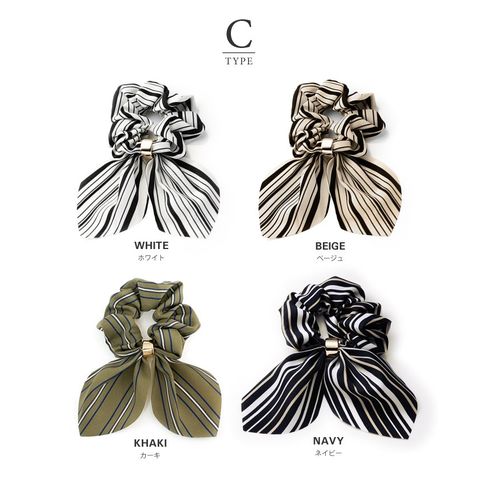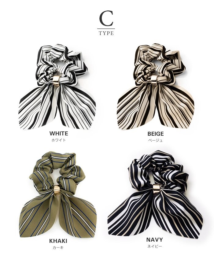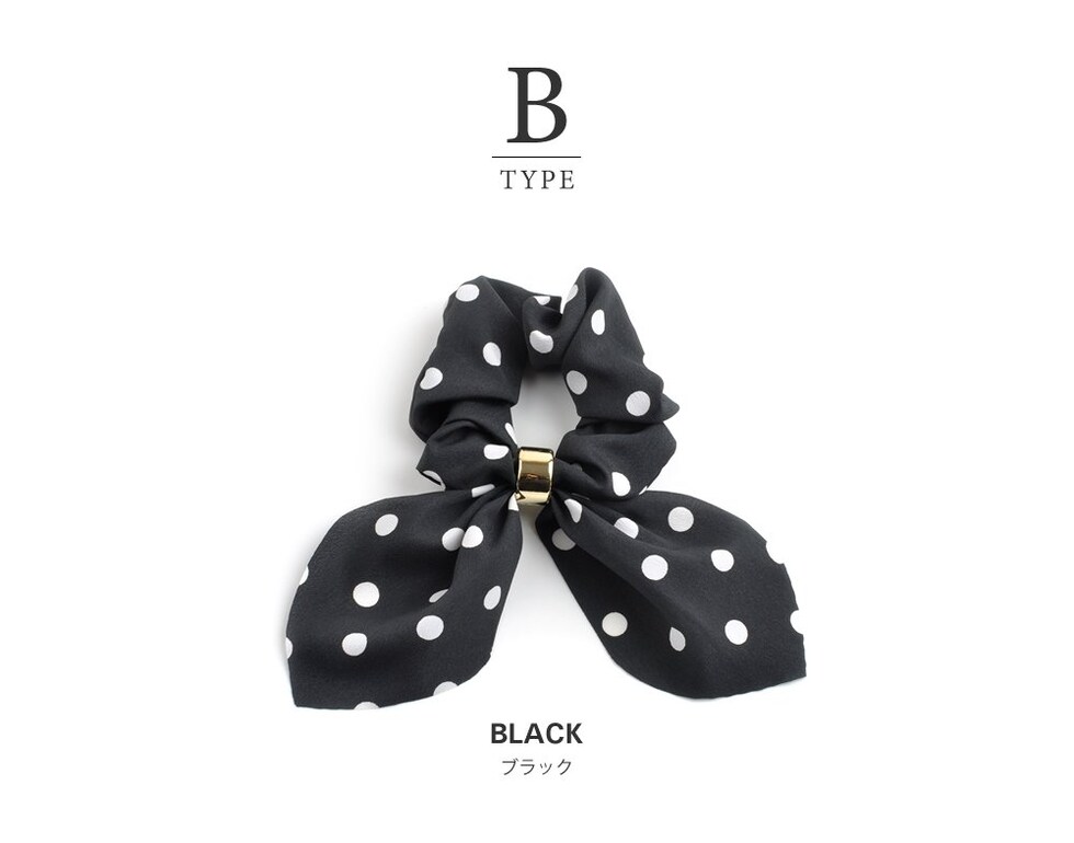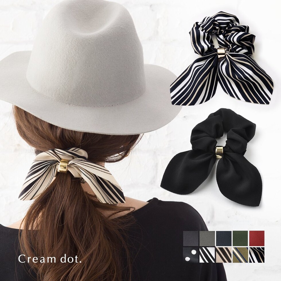 ヘアアクセサリー レディース 10色 シュシュ リボン 軽い ボリューム 大きめ メタル スカーフ柄 無地 ドット ストライプ ペイズリー ヘアゴム cream dot ゆうパケット [C:ベージュ_ワンサイズ]