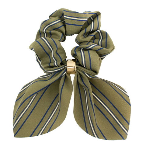 ヘアアクセサリー レディース 10色 シュシュ リボン 軽い ボリューム 大きめ メタル スカーフ柄 無地 ドット ストライプ ペイズリー ヘアゴム cream dot ゆうパケット [C:カーキ_ワンサイズ]