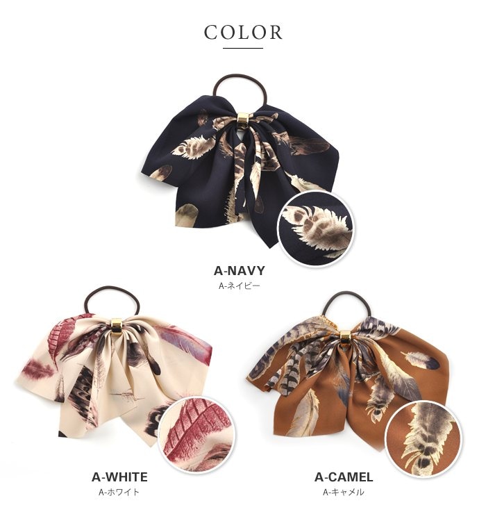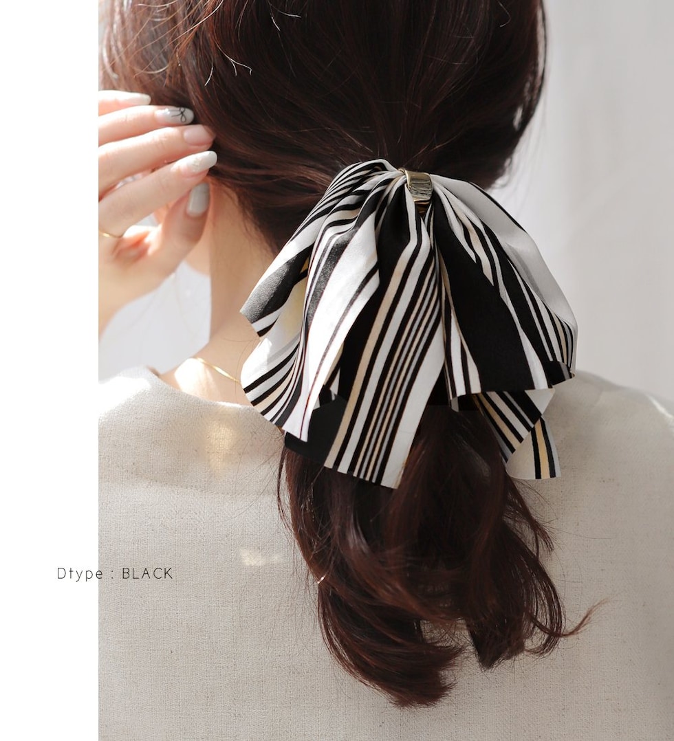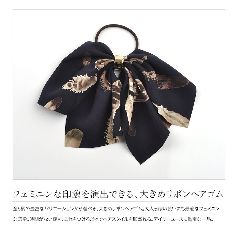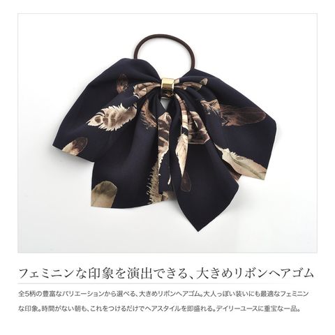 全5柄のバリエーションから選べる、大きめリボンヘアゴム。大人っぽい装いにも最適なフェミニンな印象。時間がない朝も、これをつけるだけでヘアスタイルを即盛れる。デイリーユースに重宝な一品。
