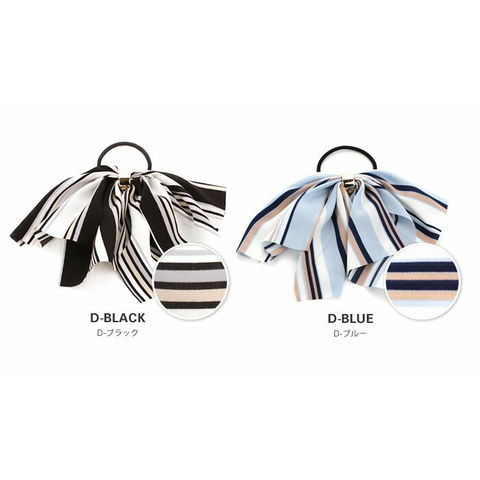 ヘアアクセサリー レディース ヘアゴム リボン ダブルリボン 柄 ストライプ 花柄 ロングリボン ヘアアクセ 小物 ファッション雑貨 cream dot ゆうパケット [A:ネイビー_ワンサイズ]