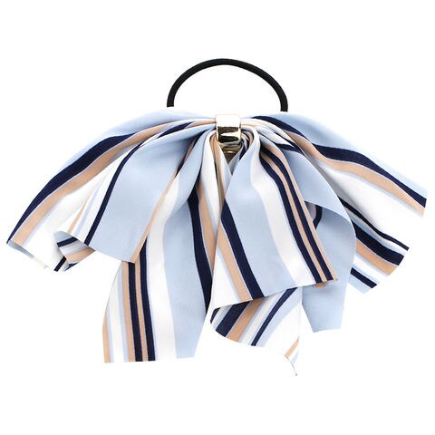 ヘアアクセサリー レディース ヘアゴム リボン ダブルリボン 柄 ストライプ 花柄 ロングリボン ヘアアクセ 小物 ファッション雑貨 cream dot ゆうパケット [D:ブルー_ワンサイズ]