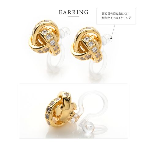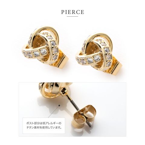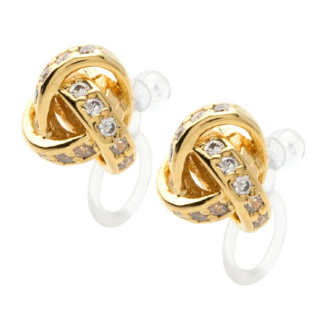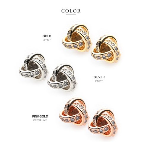 ビジューをはめ込んだ3つのリングが交差したような、立体感のあるピアス/イヤリング。