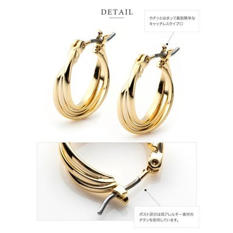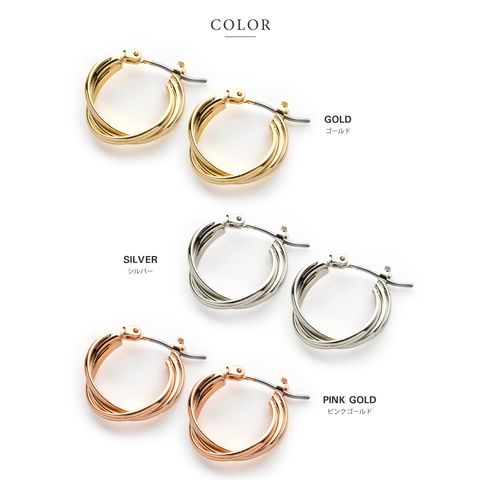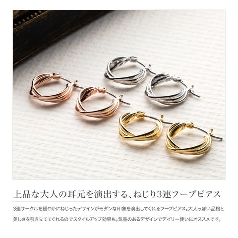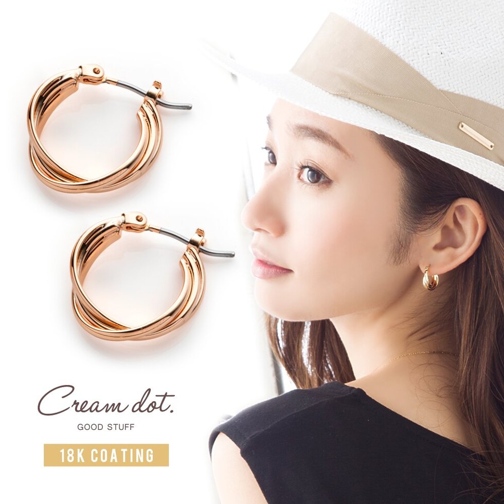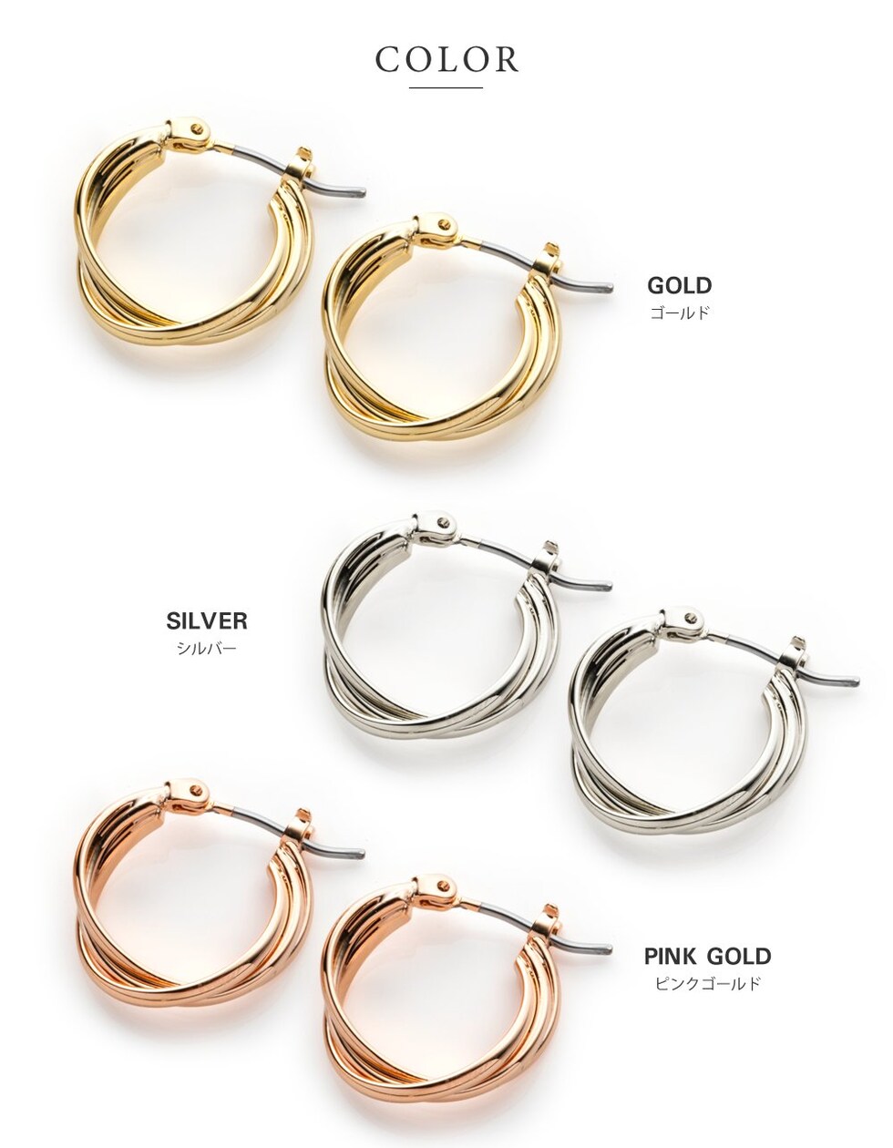 ピアス 金属アレルギー ニッケルフリー レディース フープ キャッチレス 開閉式 3連風 三重 ひねり ねじり cream dot ゆうパケット [シルバー_ピアス]