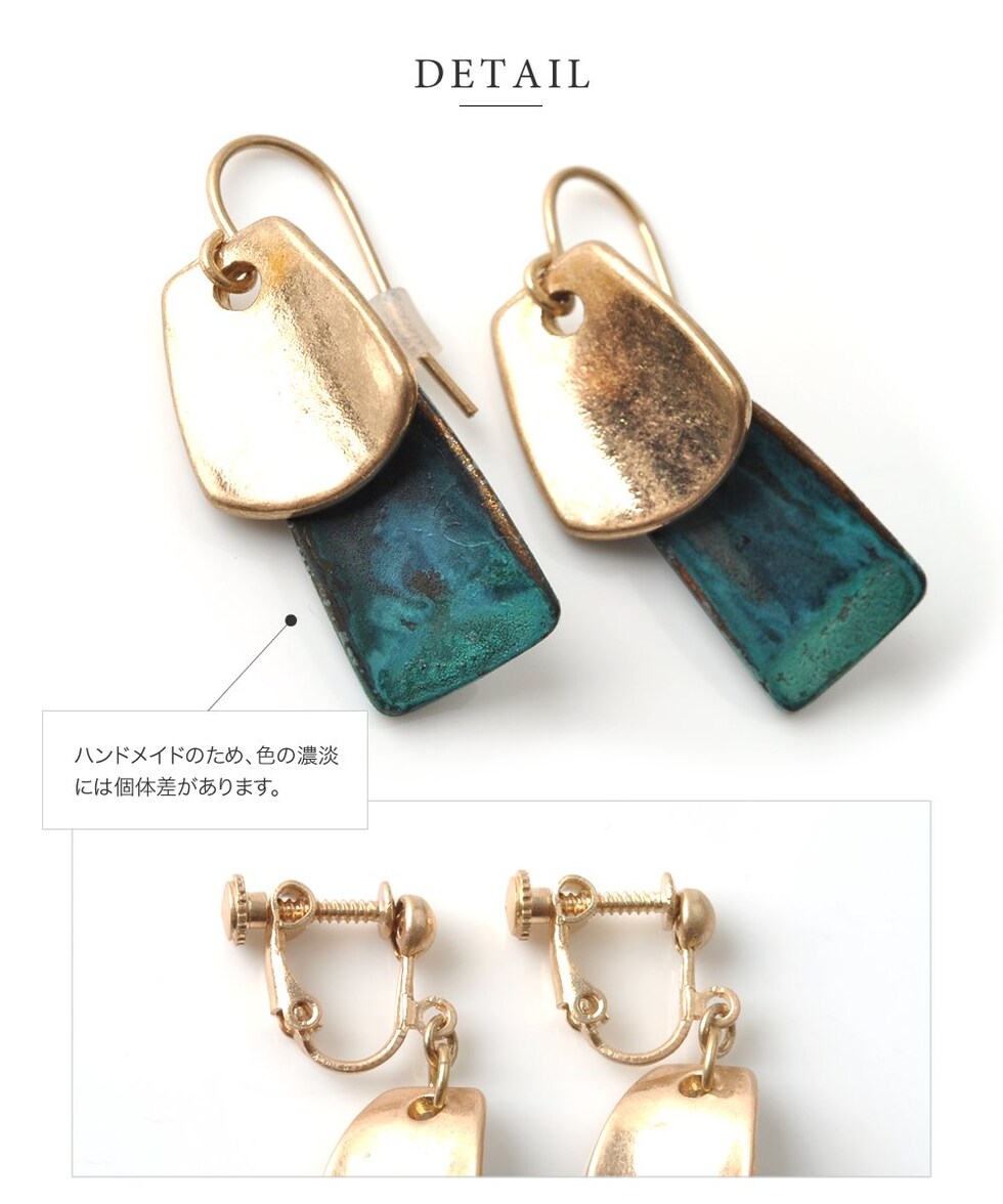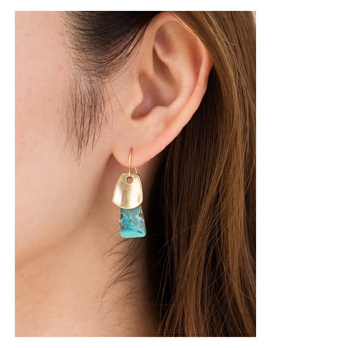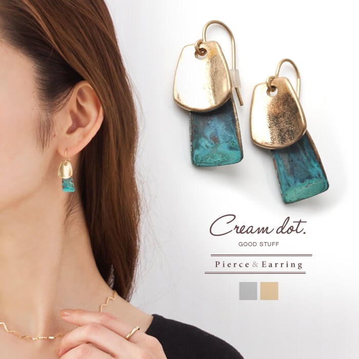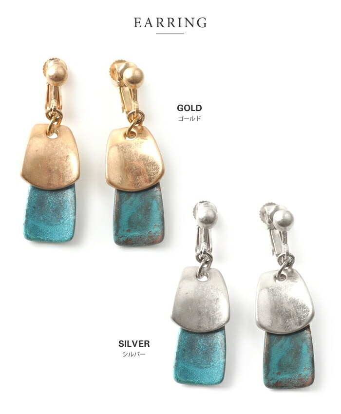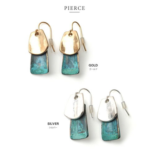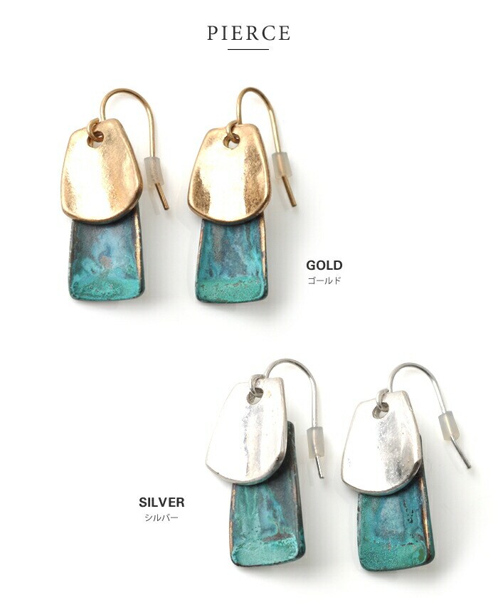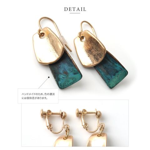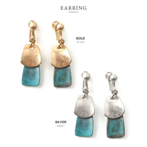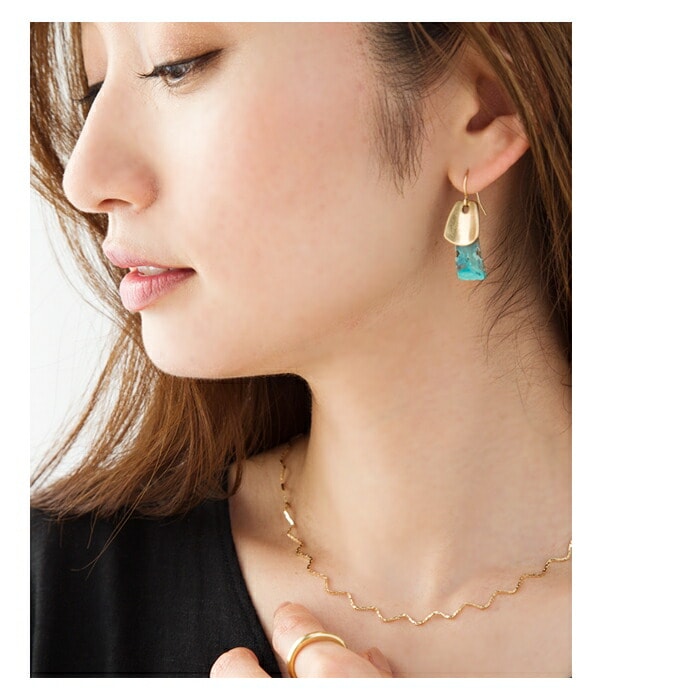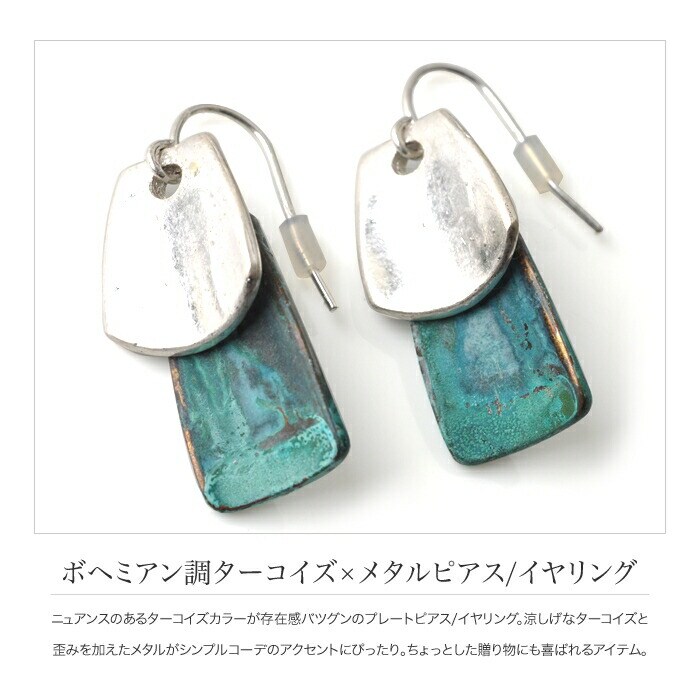 ニュアンスのあるターコイズカラーが存在感バツグンのプレートピアス/イヤリング 。