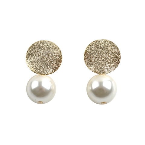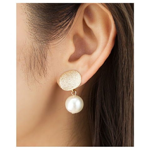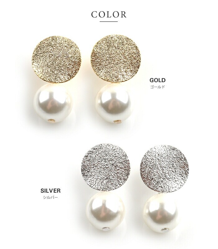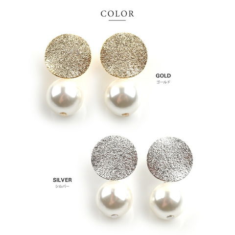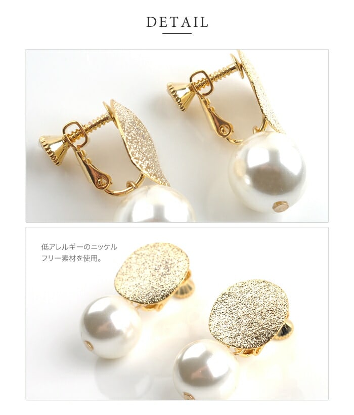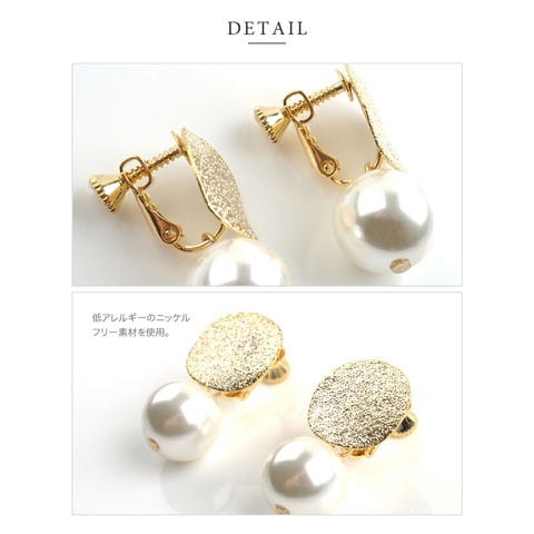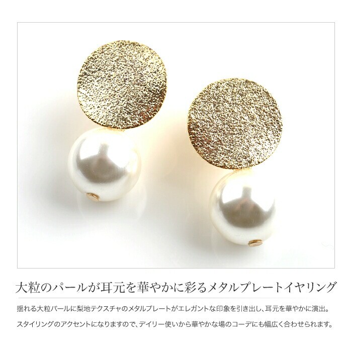 イヤリング 金属アレルギー ニッケルフリー レディース 大ぶり 大粒 パール メタルプレート 加工 モチーフ ネジ式 cream dot ゆうパケット [ゴールド_イヤリング]
