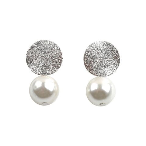 イヤリング 金属アレルギー ニッケルフリー レディース 大ぶり 大粒 パール メタルプレート 加工 モチーフ ネジ式 cream dot ゆうパケット [シルバー_イヤリング]