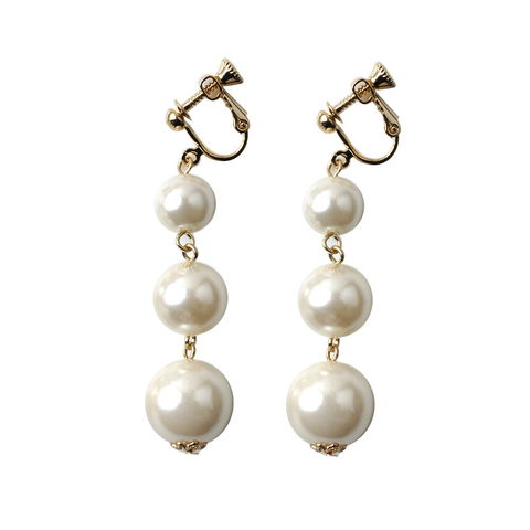 ピアス イヤリング レディース ネジ式 フック パール 3粒 揺れる チェーン 入学式 卒業式 cream dot ゆうパケット [ゴールド_イヤリング]