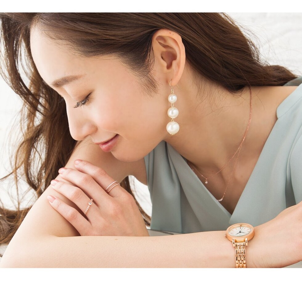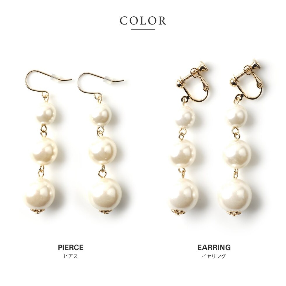 ピアス イヤリング レディース ネジ式 フック パール 3粒 揺れる チェーン 入学式 卒業式 cream dot ゆうパケット [ゴールド_ピアス]