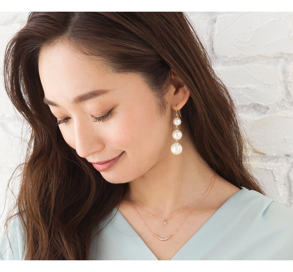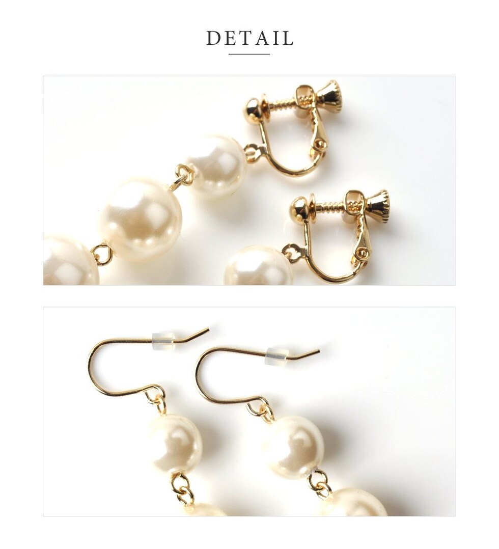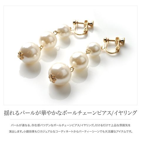 パールが連なる、存在感バツグンなボールチェーンピアス/イヤリング。