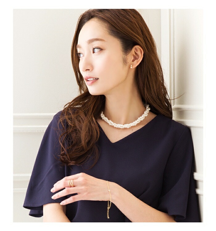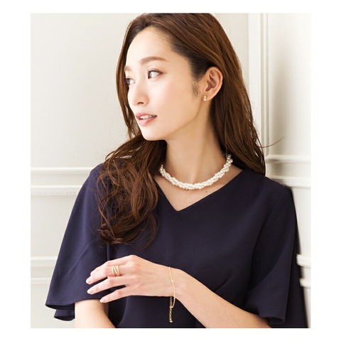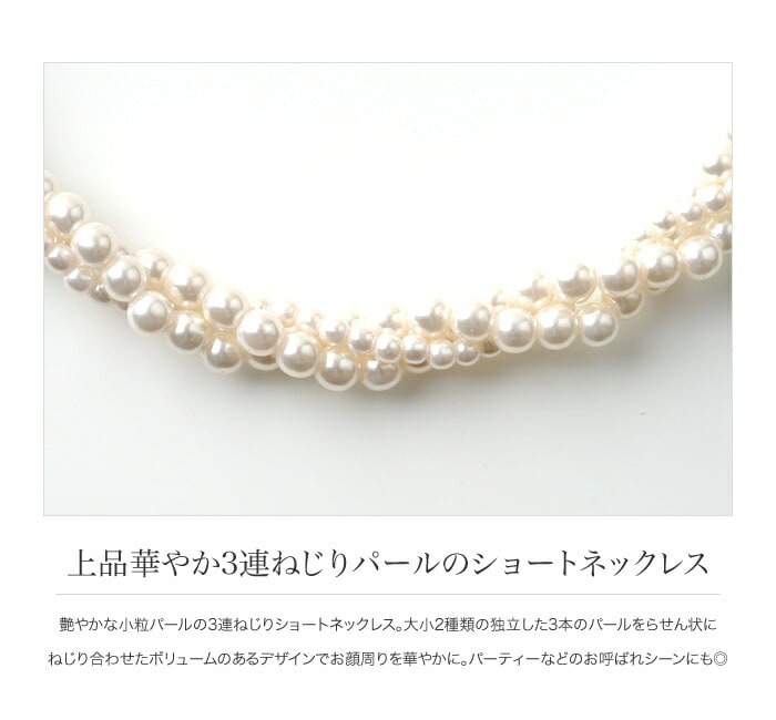 艶やかな小粒パールの3連ねじりショートネックレス。
