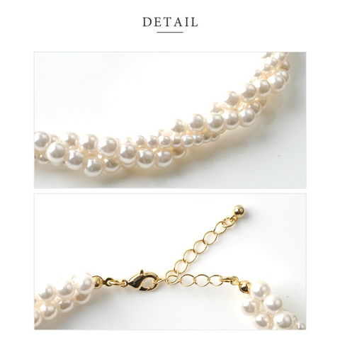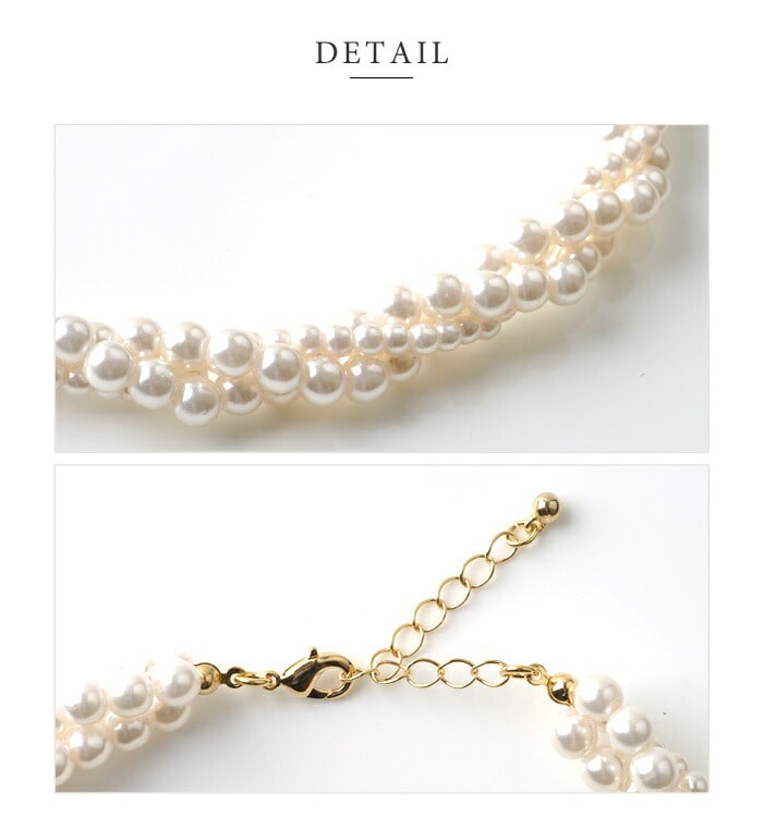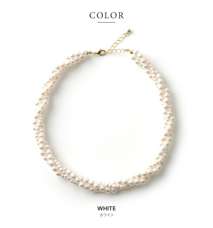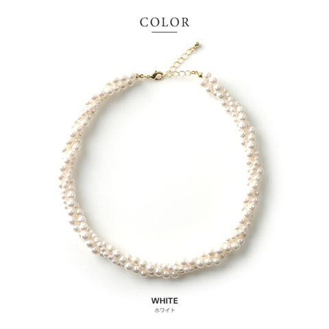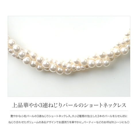 ネックレス レディース 小粒 パール 3連 編み込み 捻り ツイスト ボリューム ドレス 小物 ショート cream dot ゆうパケット [ホワイト_ワンサイズ]