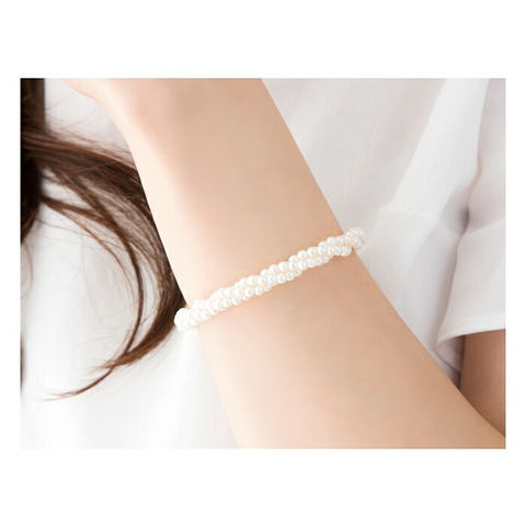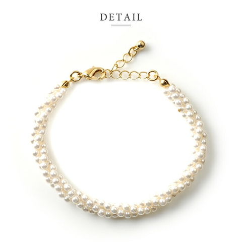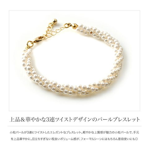 小粒パールが3連にツイストしたエレガントなブレスレット。