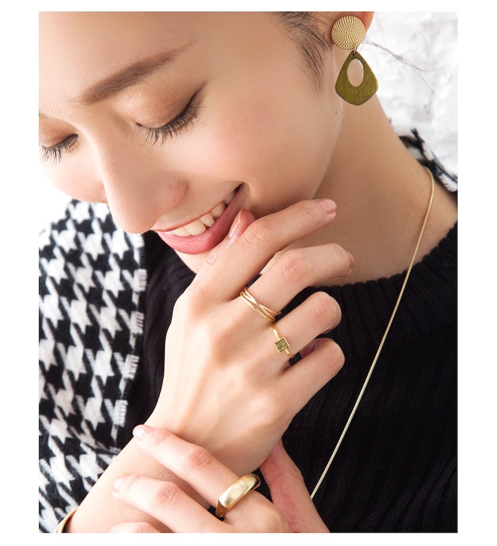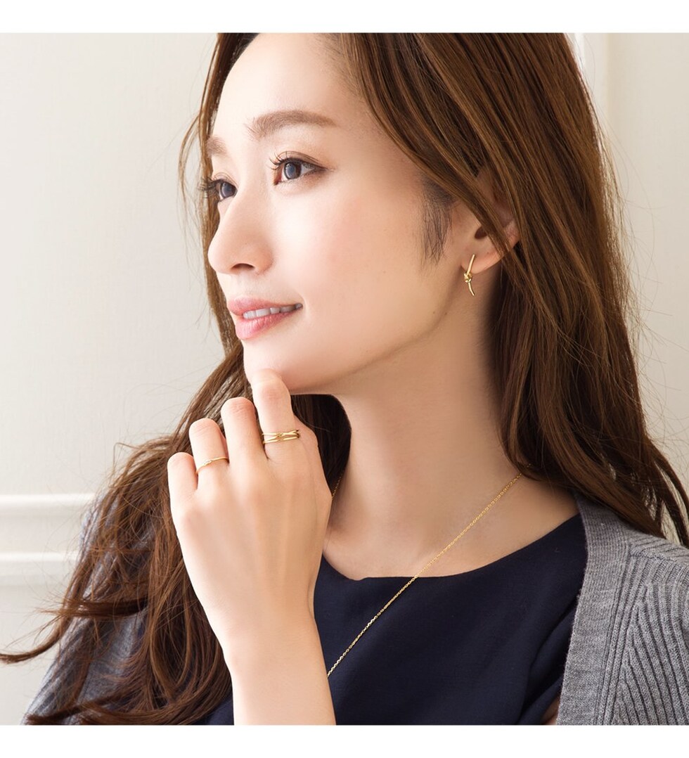 主張しすぎないデザインだから、どんなリングとも相性バツグン。手元をさりげなく華やかにしてくれます。