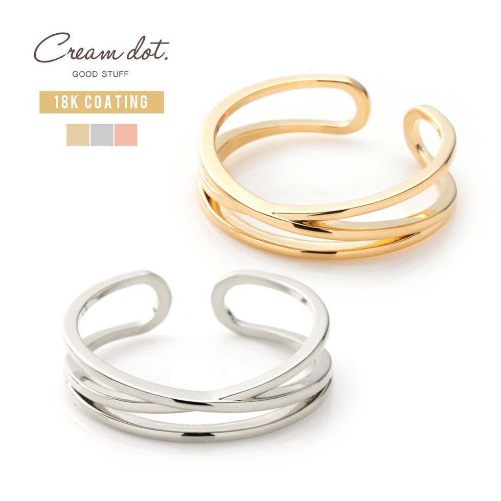 リング 指輪 金属アレルギー ニッケルフリー レディース オープンリング フリーサイズ クロスライン 重ねづけ 細身 cream dot ゆうパケット [ピンクゴールド_フリーサイズ]