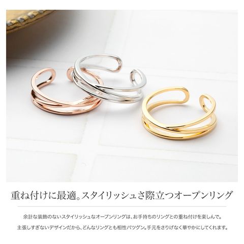 余計な装飾のないスタイリッシュなオープンリングは、お手持ちのリングとの重ね付けを楽しんで。