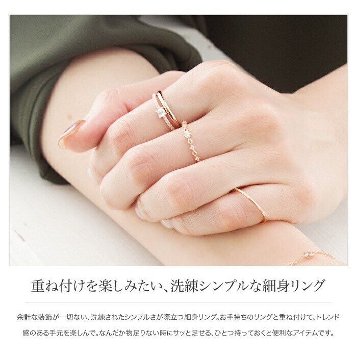 リング 指輪 レディース オープンリング アクセサリー フリーサイズ ライン 重ねづけ 細身 相当 小物 cream dot ゆうパケット [ピンクゴールド_フリーサイズ]