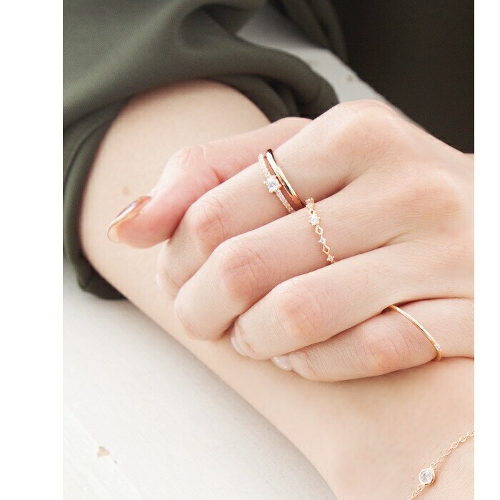 お手持ちのリングと重ね付けて、トレンド感のある手元を楽しんで。