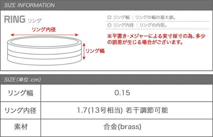 リング内径:1.7(13号相当) 若干調節可能