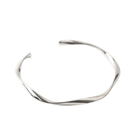 緩やかにツイストされ、波打つラインが印象的なメタルバングル。華奢ながらさりげない存在感を放ちます。どんなコーデにも映えるシンプルデザインなので、お手持ちのブレスレットと重ね付けを楽しんでも◎