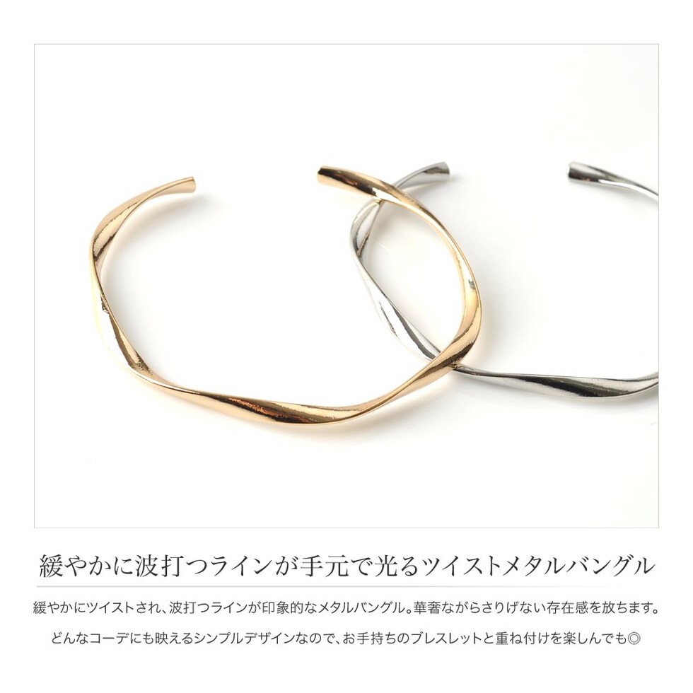 バングル レディース ツイスト ひねり 重ねづけ オープン 金 銀 リゾート 夏 アクセサリー cream dot ゆうパケット [シルバー_フリーサイズ]