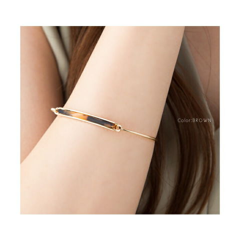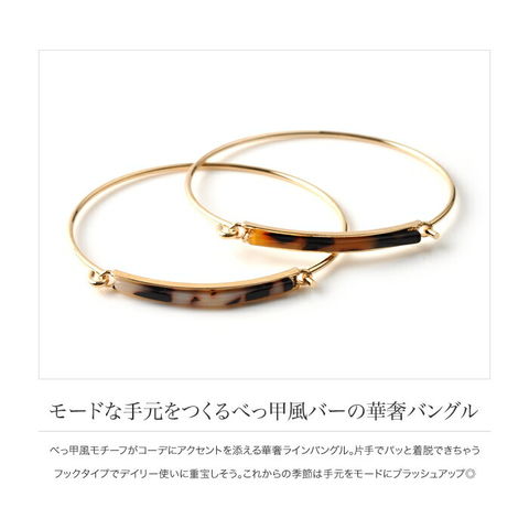 べっ甲風モチーフがコーデにアクセントを添える華奢ラインバングル。