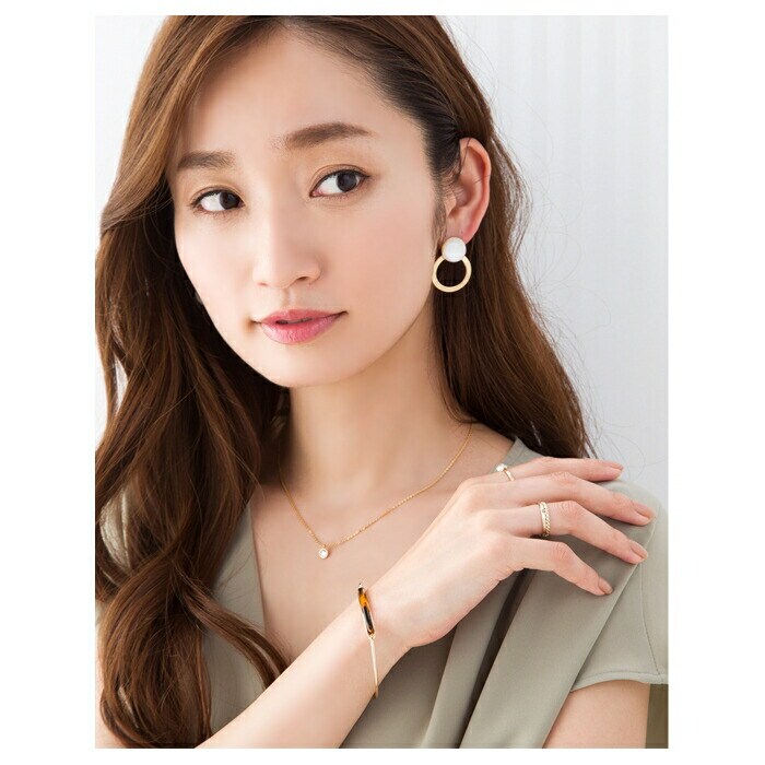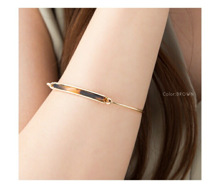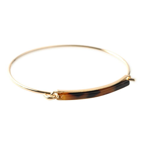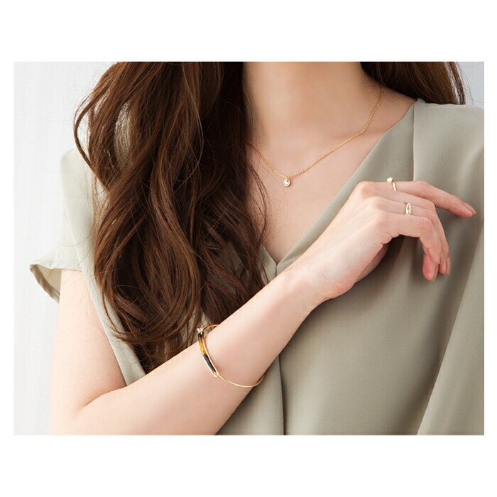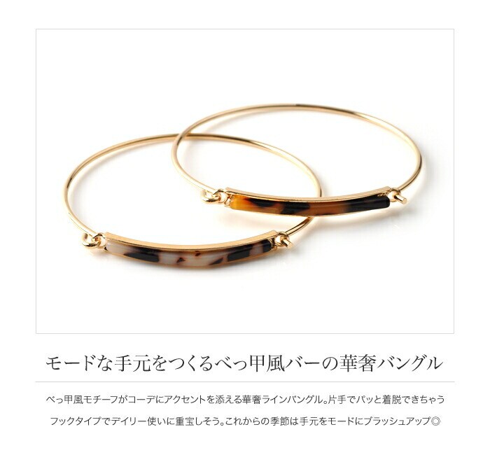 べっ甲風モチーフがコーデにアクセントを添える華奢ラインバングル。