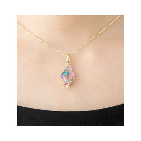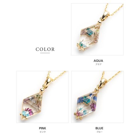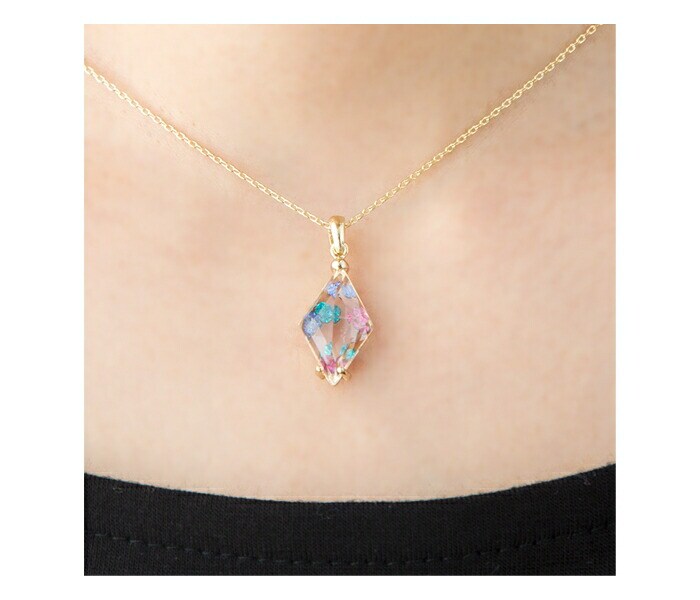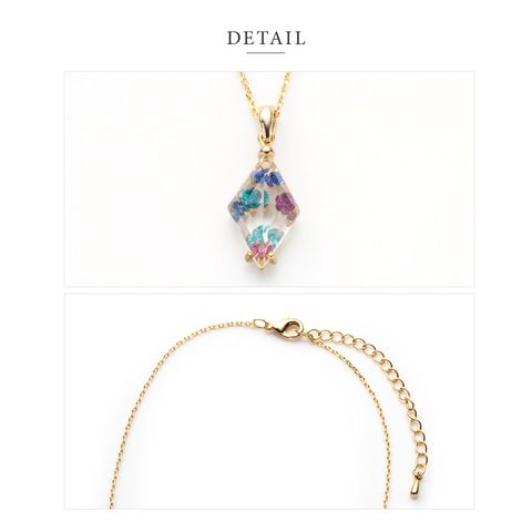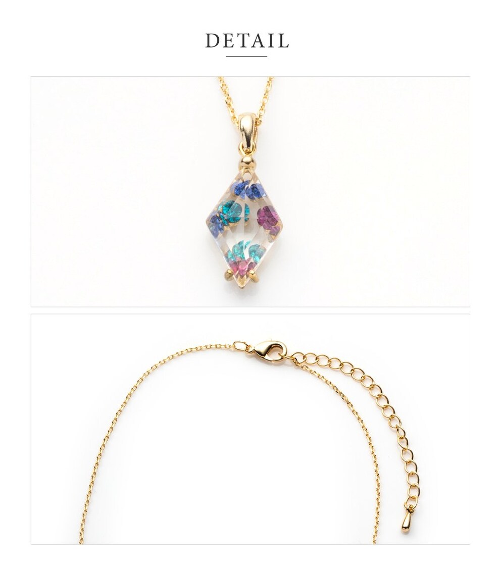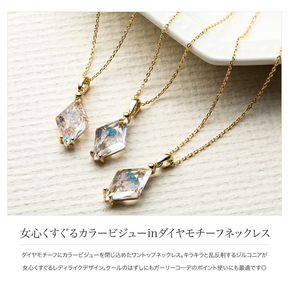 ダイヤモチーフにカラービジューを閉じ込めたワントップネックレス。