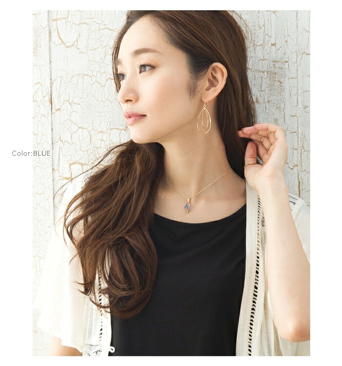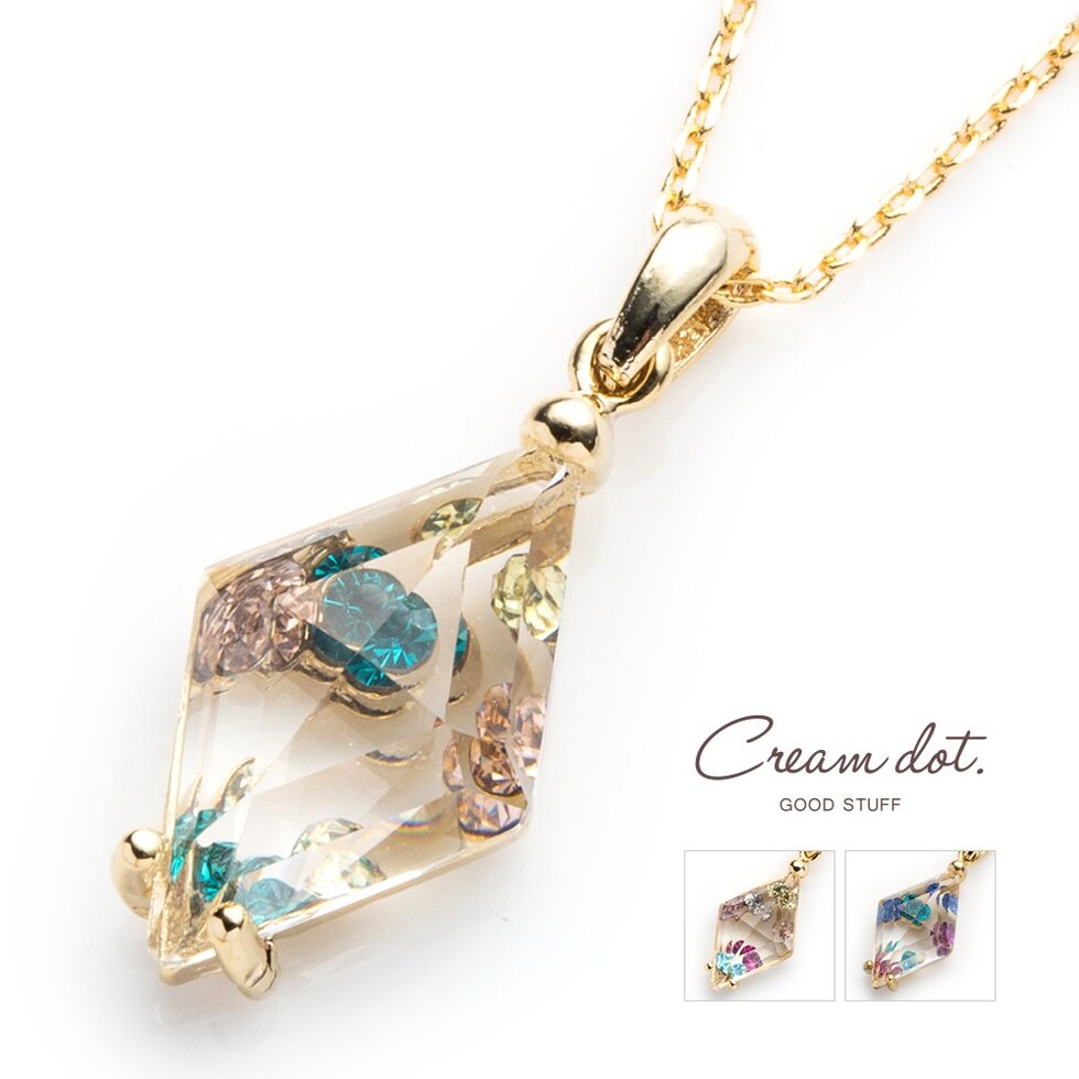 ネックレス レディース ショート ダイヤ モチーフ ひし形 ドロップ 多面カット ビジュー アクア 重ねづけ アクセサリー cream dot ゆうパケット [ピンク_ワンサイズ]