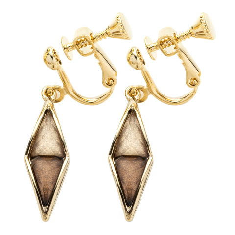 ピアス イヤリング レディース ひし形 ダイヤ バイカラー レディース揺れる ネジ式 フック イエロー cream dot ゆうパケット [ベージュ_イヤリング]