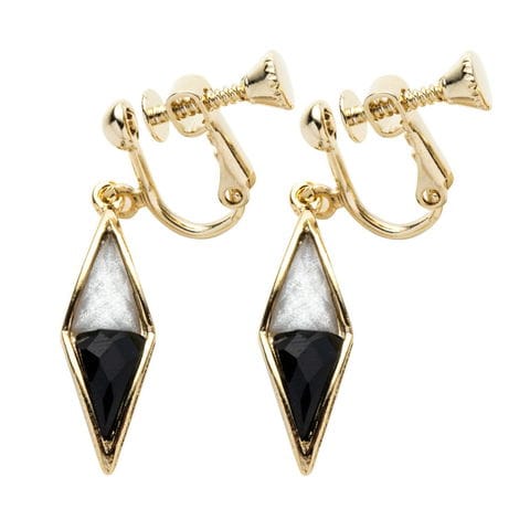 ピアス イヤリング レディース ひし形 ダイヤ バイカラー レディース揺れる ネジ式 フック イエロー cream dot ゆうパケット [ブラック_イヤリング]