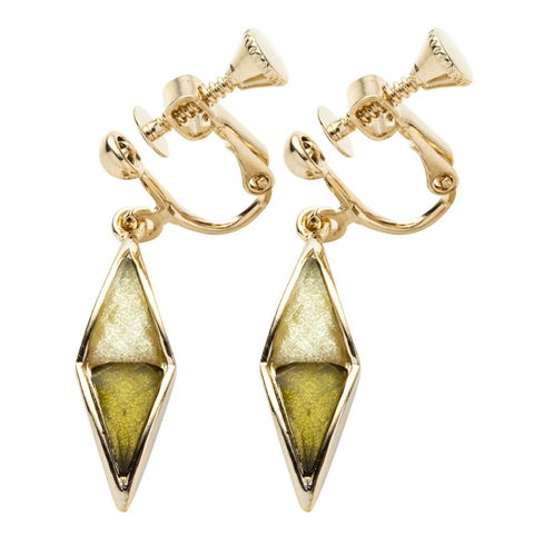 ピアス イヤリング レディース ひし形 ダイヤ バイカラー レディース揺れる ネジ式 フック イエロー cream dot ゆうパケット [マスタード_イヤリング]