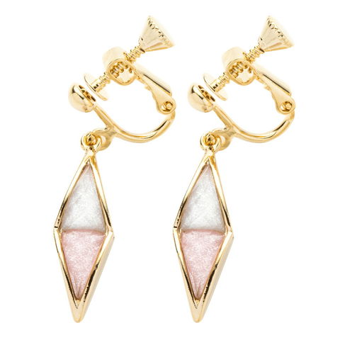 ピアス イヤリング レディース ひし形 ダイヤ バイカラー レディース揺れる ネジ式 フック イエロー cream dot ゆうパケット [ピンク_イヤリング]