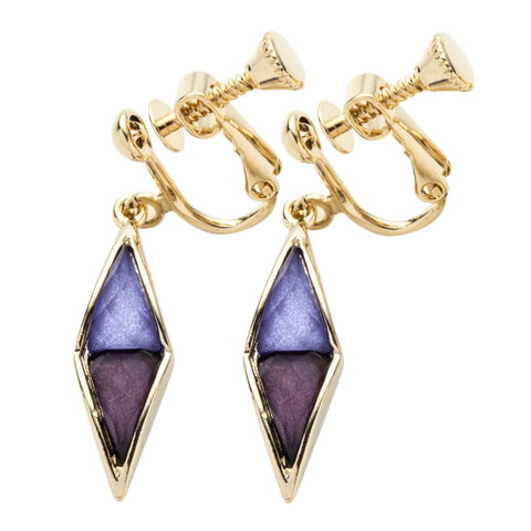 ピアス イヤリング レディース ひし形 ダイヤ バイカラー レディース揺れる ネジ式 フック イエロー cream dot ゆうパケット [パープル_イヤリング]