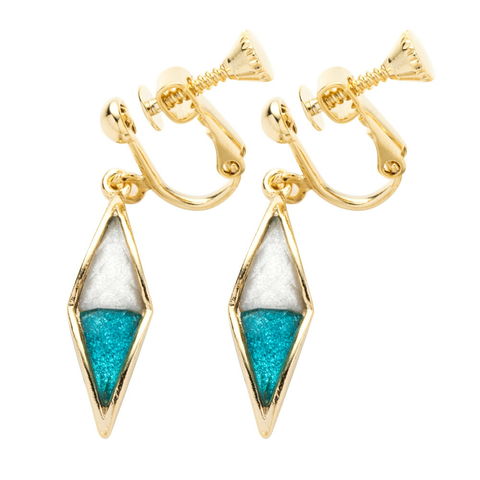 ピアス イヤリング レディース ひし形 ダイヤ バイカラー レディース揺れる ネジ式 フック イエロー cream dot ゆうパケット [ターコイズ_イヤリング]
