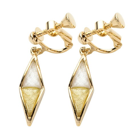 ピアス イヤリング レディース ひし形 ダイヤ バイカラー レディース揺れる ネジ式 フック イエロー cream dot ゆうパケット [イエロー_イヤリング]