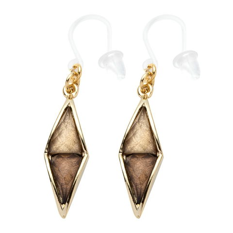 ピアス イヤリング レディース ひし形 ダイヤ バイカラー レディース揺れる ネジ式 フック イエロー cream dot ゆうパケット [ベージュ_ピアス]
