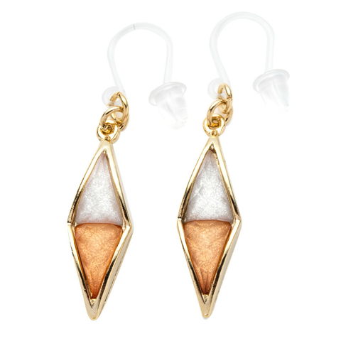 ピアス イヤリング レディース ひし形 ダイヤ バイカラー レディース揺れる ネジ式 フック イエロー cream dot ゆうパケット [オレンジ_ピアス]
