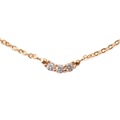 3粒のジルコニアをあしらったクレッセントモチーフの華奢ネックレス。