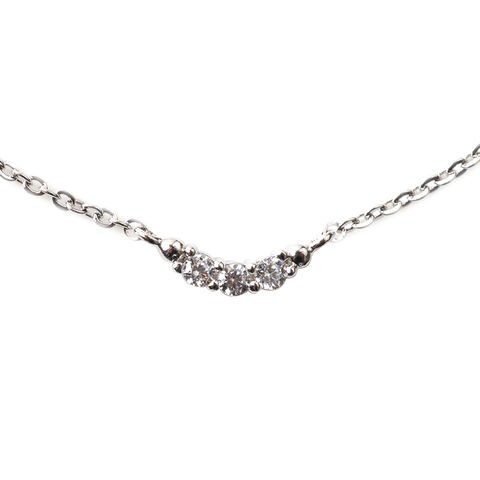 3粒のジルコニアをあしらったクレッセントモチーフの華奢ネックレス。