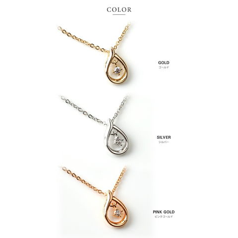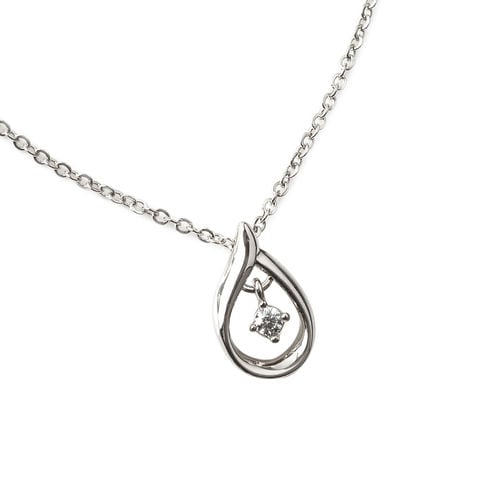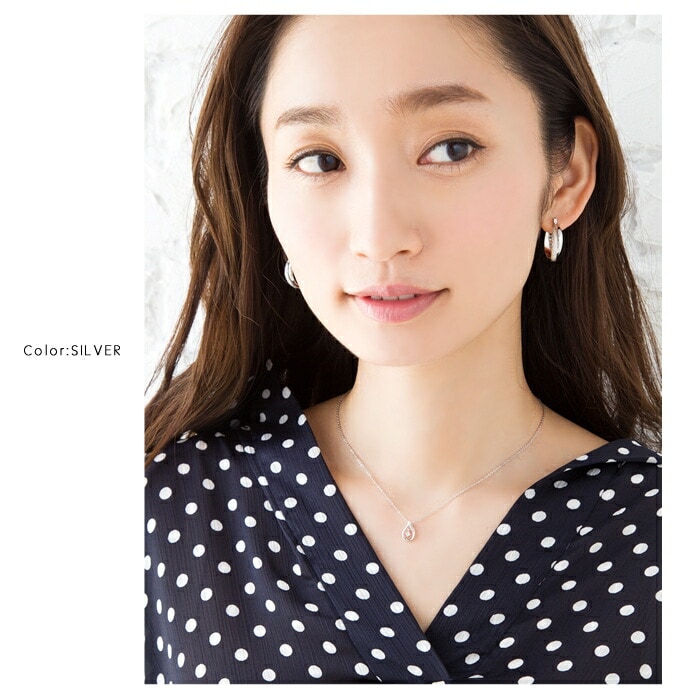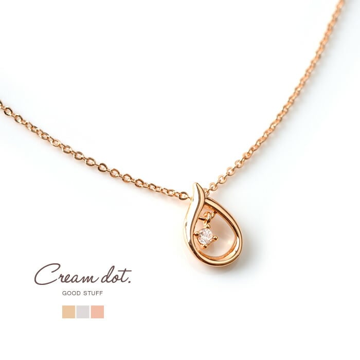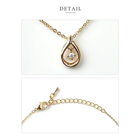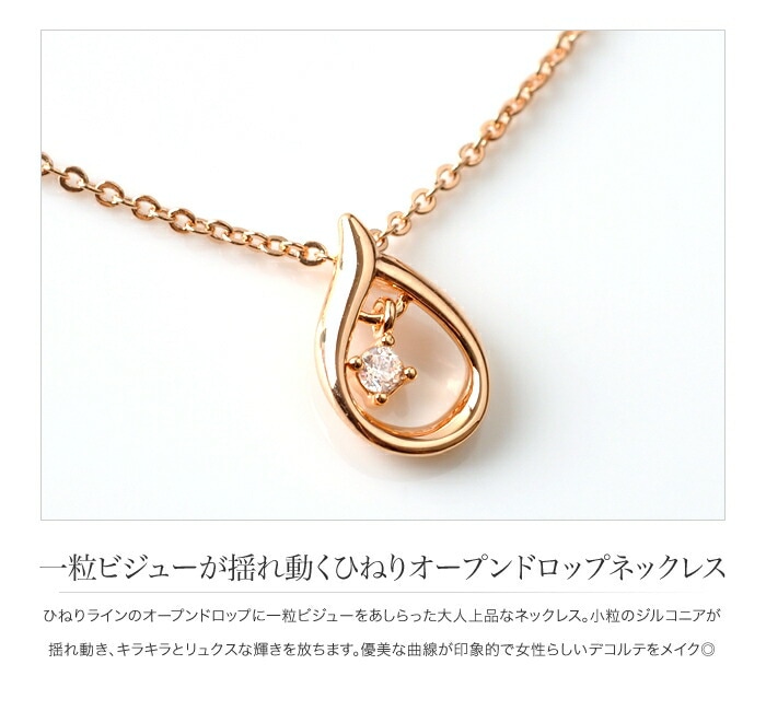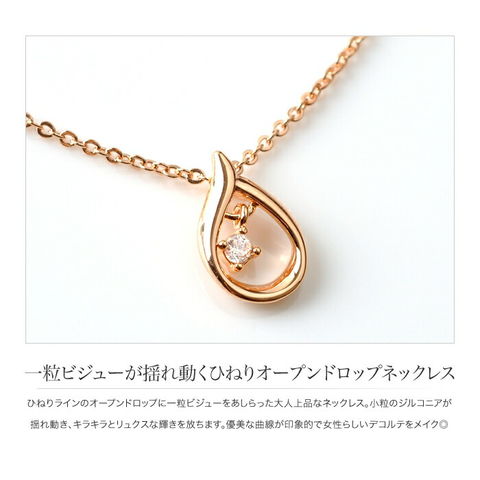 ひねりラインのオープンドロップに一粒ビジューをあしらった大人上品なネックレス。小粒のジルコニアが揺れ動き、キラキラとリュクスな輝きを放ちます。